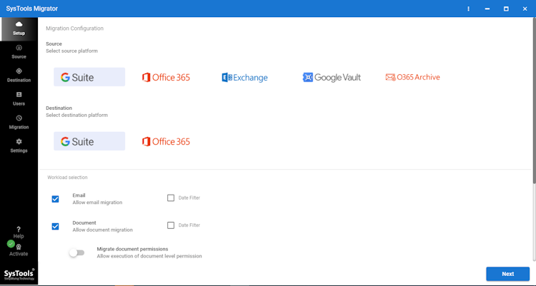 SysTools Migrator performs cloud-to-cloud migration in a variety of ways. It contains options that allow data to be moved from one cloud platform or to the same domain to another cloud platform. Users simply select the required source and target source and leave the rest to the tool. The tool can migrate accounts in the order of login and priority.