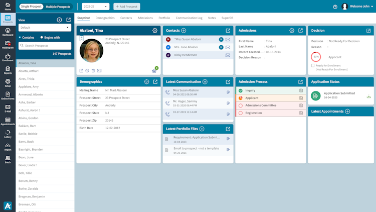 AdmissionsPlus’s user interface