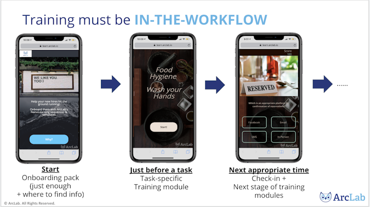 Organisations use ArcLab’s Learning & Development (L&D) platform to easily create, deliver Nano Learning - targeted bite-sized training modules - to employees on-demand, through mobile.