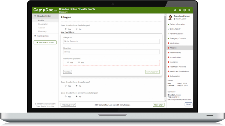 CampDoc is a cloud-based electronic health record system for camps which also offers tools for online registration, payment processing, travel and emergency medical protection, and more. The system is used in over 1,250 organizations, including day camps, residential summer camps, YMCAs, JCCs, colleges and universities, special needs or medical camps, and parks & recreation departments.