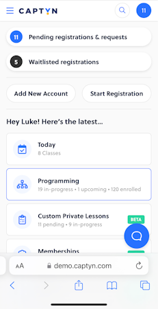 Captyn is THE 21st century option for all your registration and class management needs. Use Captyn on your phone or tablet at home, in the office, at the beach--wherever you want!
