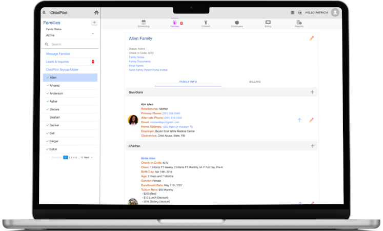 • Centralized data: Family, children, emergency contacts, authorized pick-up & staff.
