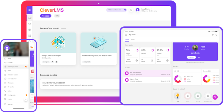 CleverLMS is a cloud-based e-learning platform that provides customizable training, management, and analytics tools for employee training and onboarding. You can create interactive tasks filled with video and audio files to make the learning process more engaging. Get a personalized branded product for web, iOS and Android devices or integrate the solution into your own system with the SDK.