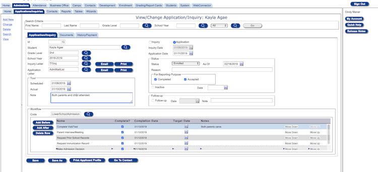 Key features of DaySchool include application management, attendance tracking, online payments, student information and records, progress reports, class registration, and a parent portal. The admissions management solution allows teams to store data about parents, alumni, grandparents, applicants, donors, and inquiries, in a unified database for future reference. To facilitate communication, the WebConnector enables prospective families to submit online applications and inquiries.