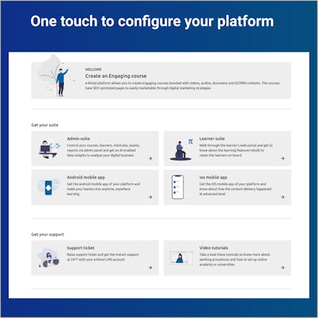 e-khool LMS is an advanced learning management system boosted with AI technologies. Through e-khool LMS, universities, companies, schools and training academies can create their own branded academy and they can get customized learning platforms on web and mobile. e-khool LMS strengthens the LMS software via five important features.