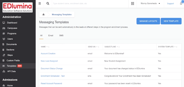 EDlumina Admissions’s user interface