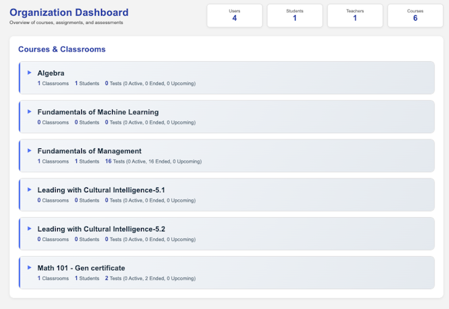 The platform includes an extensive suite of AI driven tools for educational content creation and assessment. The AI Course Creator automates generation of complete courses from a provided syllabus, encompassing lessons, slides, study guides, and assessments within minutes. The AI Lesson Planner generates structured lesson plans with defined learning objectives and assessment rubrics. The AI Slide Generator converts existing text and files into presentation materials. Assessment capabilities feature auto-grading, custom evaluation criteria, and detailed performance reports. For learner support, the platform offers an AI Tutor accessible at all times by text or voice input for instant explanations and guidance. Additional functionality comprises certificate generation with unique identifiers and automated final grading with configurable weightings. Role-based dashboards provide topic-level performance tracking and learner activity analytics.
