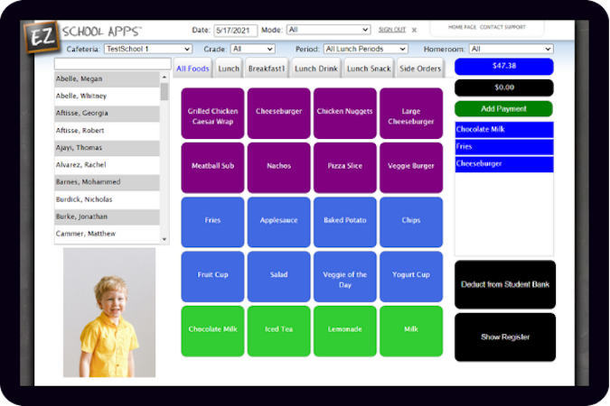 Starting from $695 per school year, EZ School Apps offers an easy-to-use, cloud-based lunch and cafeteria management solution with a fast and secure POS system, free & reduced lunch tracking, online lunch preordering, and payments.