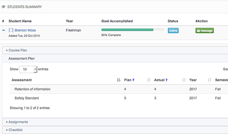From the activity dashboard, users can create and modify student profiles which include student details, learning plans, student performance roadmaps, and more. Staff, students, and parents can all access the dashboard with administrators able to set up permissions to control who can access what material. Messages, notifications, event schedules, work assignments, goals, and progress reports can also be accessed and controlled from the dashboard. Plans can be created by staff for each student to guide them towards reaching their goals, consisting of several factors to measure progress, and action items or assignments can also be added with the aim of improving performance.