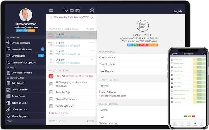 A suite of iPhone and Android multilingual apps ensure teachers, students and parents can access important information and complete tasks at any time, on any mobile device. Fully integrated with the iSAMS School Management Software.