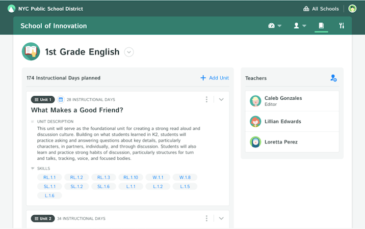 With Kiddom’s easy to use platform, educators build out, digitally manage, and share standards-aligned curriculum. From there, teachers access curriculum, and supplement as needed with lesson plans and assessments, choosing from over 70,000 standards-aligned resources in the Kiddom content library. Planning, assigning and assessing students all happens in one place, making teachers’ lives easier.