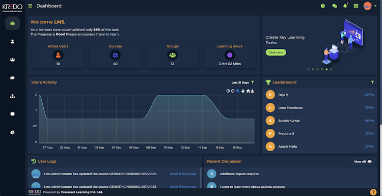 KREDO is an advanced AI driven learning management platform designed for organizations that want fast, scalable and high impact corporate training. Built as a cloud native LMS, KREDO enables businesses to streamline employee onboarding, automate training workflows, support continuous upskilling and deliver measurable improvements in workforce performance.
