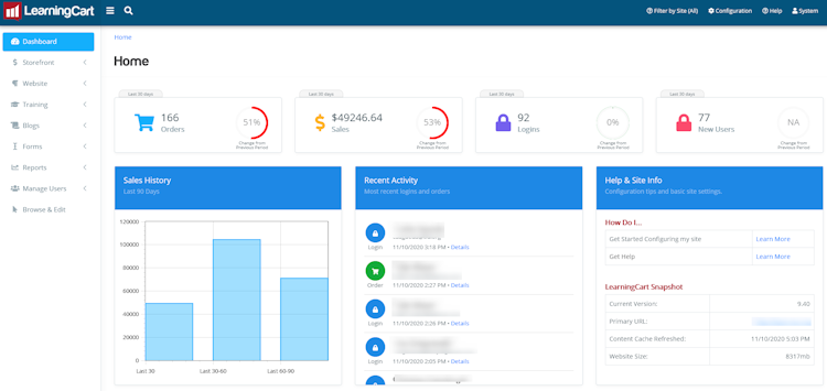 LearningCart's content management system (CMS) allows companies to keep their site content up to date and optimized for search engines. It also allows administrators complete control over the website template. LearningCart's template system supports essentially any design, allowing users to exactly match their corporate website, or to use LearningCart as a primary web presence.