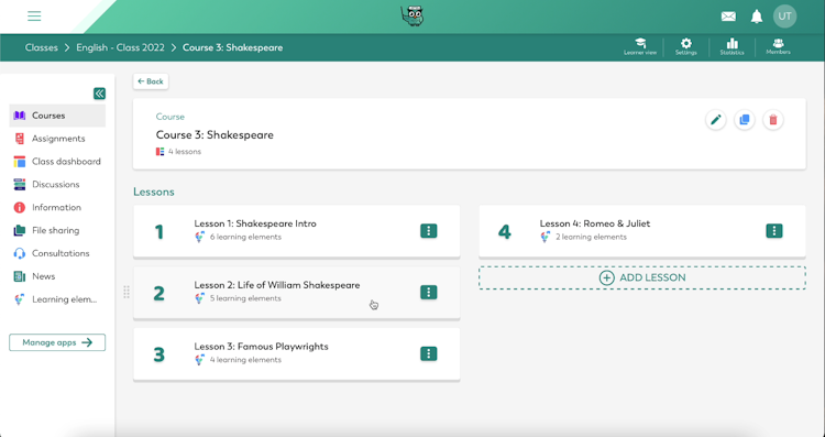 Edaptio LearnU’s user interface