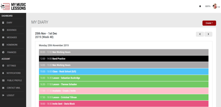 My Music Lessons is a scheduling software designed specifically for private music teachers, music schools and their students. This all-in-one teaching management solution includes automated booking, payment processing, and invoicing.