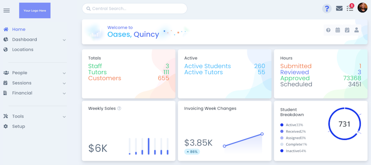 Oases Online is a cloud-based tutoring management software designed to help businesses streamline various administrative processes related to scheduling, accounting, and more. It enables users to gain an overview of sales performance and student analytics on a dashboard.