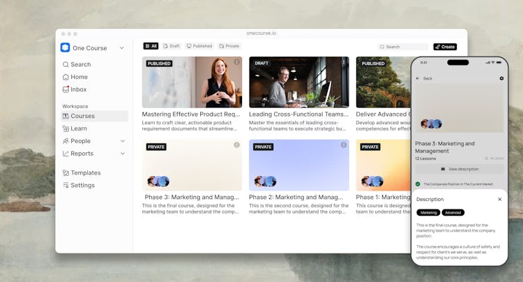 One Course is an AI-based learning management system and course builder designed for organizations seeking to create, manage and deliver online training content. It caters to corporate environments, professional training providers, home care organizations, hospitality businesses and educational institutions that require comprehensive learning programs. The platform combines artificial intelligence capabilities with foundational LMS functionality to automate content generation and learner administration while maintaining engagement across diverse devices and settings.