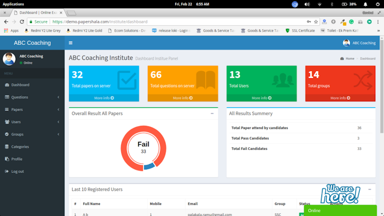 PaperShala is an open-source examination management solution that helps coaching institutes streamline operations related to assessment scheduling, student registration, results generation and more. The student dashboard allows users to access results and check overall performance based on multiple criteria such as subject-specific results, class ranks and more.