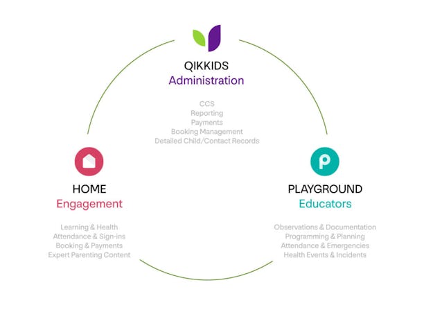 The Office module functions as the administrative hub with Child Care Subsidy management, automated billing and invoicing, and compliance reporting aligned to regulatory requirements. The Playground module offers digital portfolio capabilities for developmental documentation, observation capture, and sharing of learning progress with families in digital channels. The Home module provides a parent engagement interface with real-time access to children’s activities, developmental milestones, and center communications via mobile application. The MyWaitlist module manages pre-enrollment workflows, waitlist administration, and transition of prospective families to enrolled clients. The QikPay module handles payment processing using integrated gateways for automated fee collection that streamlines cash flow management.