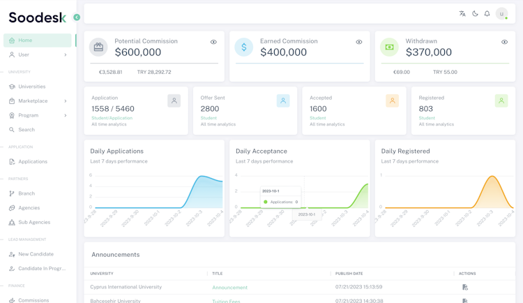 Every institution and agency is unique, and so are their application processes. Soodesk understands this diversity, offering users the flexibility to customize workflows to their specific requirements. Whether they're a prestigious university, a community college, or a dedicated recruitment agency, Soodesk molds itself to match every need precisely.
