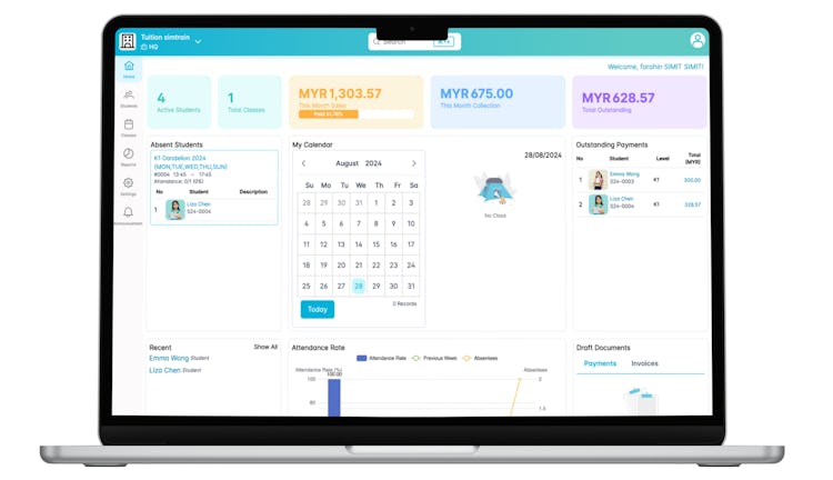 SimTrain includes LHDN-compliant e-invoicing functionality that meets Malaysian tax requirements through built-in integration with the MyInvois system. The platform generates professional digital invoices with unique IDs, digital signatures, and embedded QR codes for verification while automatically tracking invoice statuses. Advanced reporting features provide educational institutions with detailed insights into billing, fee collection, and enrollment trends across multiple branches. The system architecture employs industry-standard encryption and security measures with regular data backups to ensure information remains protected.