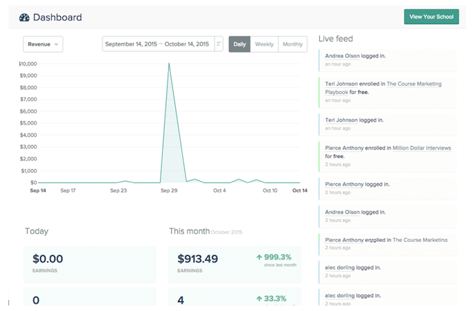 Teachable is a cloud-based course builder platform for producing rich teaching websites and online multimedia lectures. A tiered subscription solution, Free account users all the way up to Professional, High Volume and Enterprise enjoy unlimited course and student capabilities. All offer access to intuitive web-hosted publishing tools, offering template customization and rebranding options with no coding knowledge required. Content assets encompassing images, audio and video can be imported in from popular cloud storage including Dropbox, while administering high and low level updates. A revised Course Page Editor simplifies editing, although more advanced HTML/CSS development can be performed via the integrated Power Editor. Advanced publishing features for subsequent plans include custom domains, affiliate programs, webhooks and various white-labelling features. Introduce responsive learning tools such as blogs, quizzes, forums, forms and surveys – all automatically optimized to look and perform consistently across every device. Learning content is then made marketable with eCommerce tools for selling content access, running coupon campaigns, accepting global payments and increasing conversions with custom landing pages. A comprehensive administrator dashboard provides analytics monitoring student signups, revenue totals and lecture completion rates. Contact lists can be managed and exported alongside revenue reporting, while managing the payment of multiple course authors. With course content securely hosted by Teachable, automated backups and 24/7 monitoring reduces the chance of downtime. Student and payment data is made safe due to SSL certificates and level-1 PCI compliancy, while instant updates keep features current. Creators also retain ownership of course data, ideal for lecturers and authors concerned by relinquishing intellectual property.