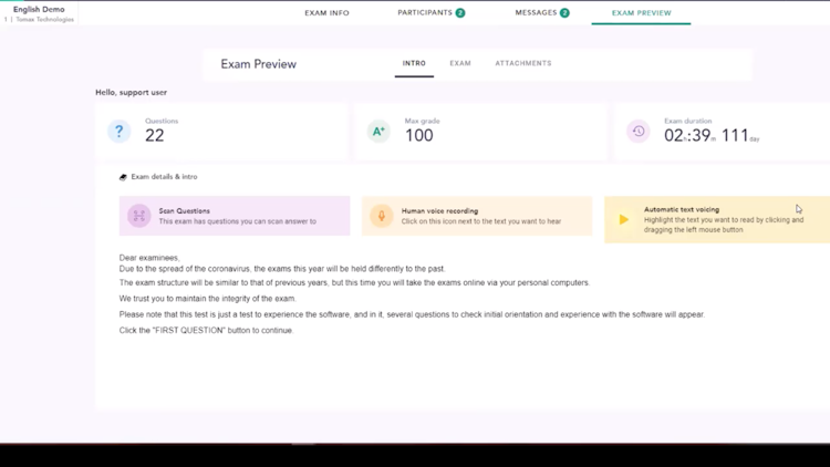 The TomaEtest exam platform allows students to be tested from anywhere securely using their personal computers and without copying.