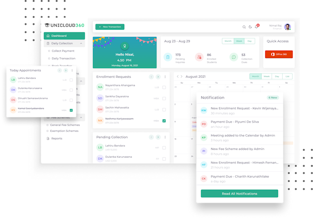 UniCloud360 is a cloud-based student management system designed to streamline the entire student lifecycle, ranging from initial course inquiries to graduation. Specifically tailored for Sri Lankan private higher education institutes, this comprehensive system caters to the diverse needs of both staff and students.