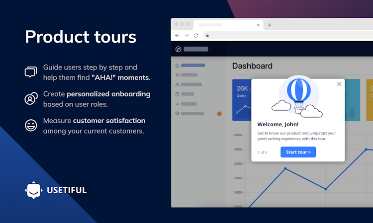 - Guides users to "aha moments" with interactive walkthroughs to increase engagement