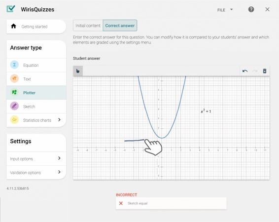 - Graphical answers: Empower students to express their understanding by answering questions with a graphical representation and drawing functions. This feature supports a wide range of graphical elements, such as points, lines, circles, and conic sections.