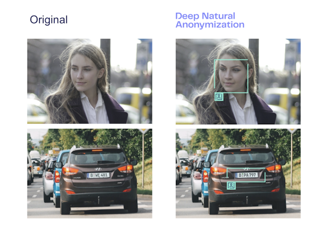 The platform provides two primary anonymization methods. Precision Blur applies deep learning models to detect and redact facial features in images and video streams. Deep Natural Anonymization employs generative algorithms to overlay non-reversible synthetic faces that protect individual identities while preserving data integrity for analytics and machine learning applications. The solution extends beyond facial anonymization to license plate anonymization by replacing plates with synthetic replicas that maintain contextual value for computer vision tasks and autonomous driving experiments. It also supports full body anonymization by obscuring identifying characteristics such as clothing details, hairstyles and tattoos.