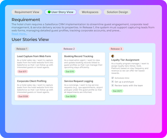 Cloobot X is an Agentic platform that reimagines how Salesforce projects are designed and delivered. It automates the most time-consuming parts of the SDLC: requirement analysis, solution architecture, and user story creation. By streamlining these early stages, Cloobot X accelerates delivery by 4x, cuts manual effort by over 40%, and ensures design consistency from day one. The result? Fewer delays, cleaner documentation, faster handoffs—and a Salesforce implementation that scales with confidence. Whether you’re a consulting firm or an in-house team, Cloobot X helps you move from scattered notes to structured specs in minutes, not weeks.