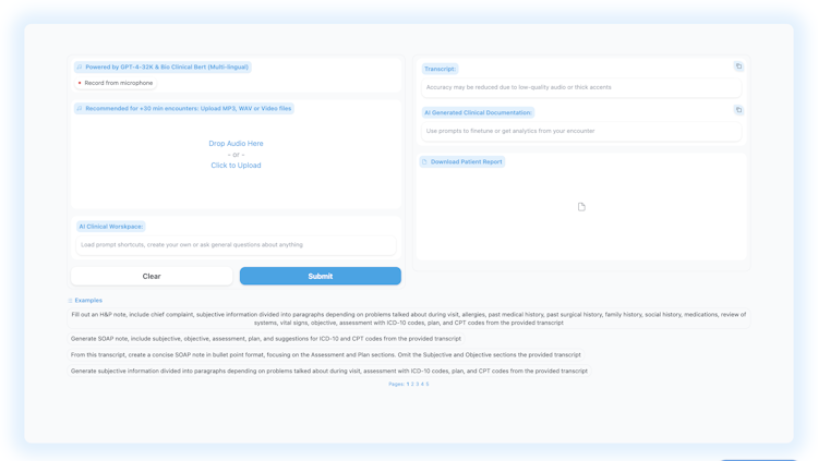 Discover the next generation in medical transcription: Our AI-powered system is meticulously crafted to cater to the unique needs of healthcare experts. Harness the efficiency of artificial intelligence to transcribe medical records with unmatched accuracy and speed. But that's not all. In today's complex healthcare landscape, adherence to regulatory standards is paramount. Our system ensures that every transcription is not only precise but also fully compliant with a myriad of regulatory standards, both local and global. Dive into a hassle-free experience, reducing manual errors and boosting productivity, all while ensuring stringent compliance. Elevate your medical documentation process with our cutting-edge AI solution.