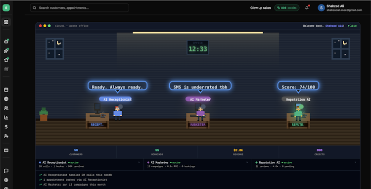 Elevoi is an artificial intelligence-powered business management platform designed specifically for salons, spas, barbershops, massage therapy clinics, physiotherapy practices, yoga studios, tattoo studios, esthetics and skincare facilities, wellness centers, and medical spas. The platform functions as an AI workforce solution that automates customer communication, appointment management, marketing operations, and reputation management tasks for service-based businesses in the beauty and wellness industries. It addresses operational challenges faced by small business owners who manage multiple administrative responsibilities while serving clients. It provides automated systems that handle customer interactions and business development activities around the clock.