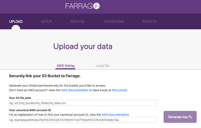 Farrago can be integrated with third party software such as AWS and Sage Accounting to import cloud-based data sets of any size.