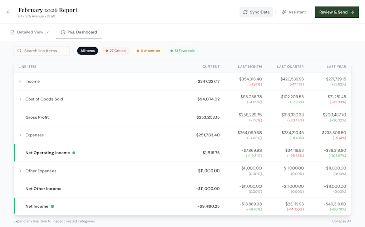 The platform enhances financial clarity by enriching profit and loss statements with plain-language insights rather than traditional accounting terminology. Its work pipeline feature produces auto-generated daily task lists derived from real-time operational data, prioritizing activities such as inventory adjustments, schedule modifications, and vendor communications. Labor management capabilities include automated alerts for overtime, scheduling optimization algorithms that align staffing levels with predicted demand, and shift planning tools to minimize overstaffing during low volume periods. Sales and channel analysis features provide margin breakdowns across revenue streams, commission tracking for delivery platforms, and monitoring of third-party marketplace performance to detect unprofitable channels.