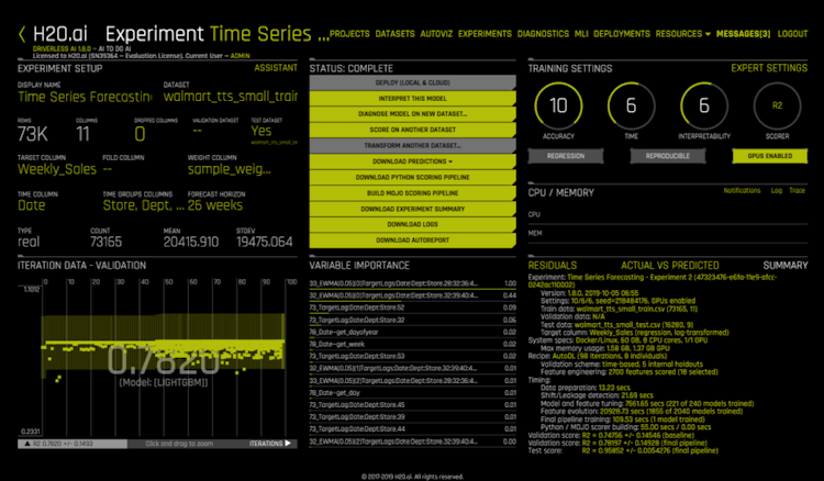 H2O Driverless AI’s user interface