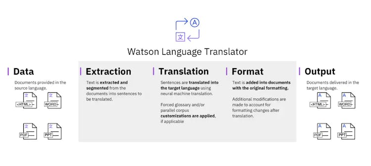 Using IBM Watson Language Translator, businesses can use a forced glossary, corpus-level customization, and parallel phrases to customize translations.