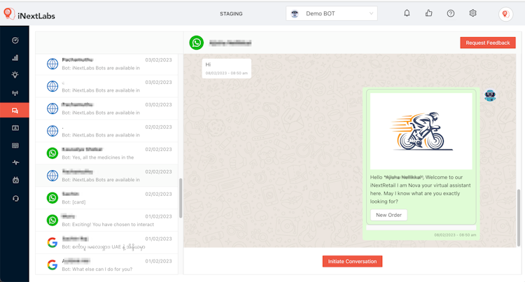 iNextLabs Botify is a conversational AI platform. Built on the sophisticated AI engines, our chatbots handle customer support to sales lead generation. Designed for specific industry, our chatbots comes with pre-built intelligence out of the box to help customer queries instantly. The platform includes several key features including sentiment analysis, handoff to human agent, adding phrases and FAQs, transcript recording, etc., to ensure the customers are provided a truly modern experience.