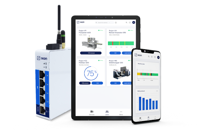 Meet IXON Cloud: the industrial IoT platform that grows with you. IXON Cloud is a complete IoT solution, from connectivity to cloud, that brings your machines, people and services together. Connect your machines to IXON Cloud to benefit instantly from optimised remote support with Remote Access Cloud. Or work on your service ambitions and increase revenue with data-driven business models with Service Lifecycle Cloud. The IXON Cloud solution is scalable and open to integrate with third party apps, so you can customise it to your own unique situation.