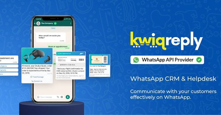 kwiqreply is a WhatsApp CRM & Helpdesk provider based on the Official WhatsApp Business API. Offering features such as Shared Inbox, Contacts Segmenting, Business Verification, Bulk Messaging and more.