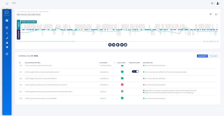 Automated quality assurance coverage across 100% of customer interactions - using an automated, digital Programmable Scorecard.