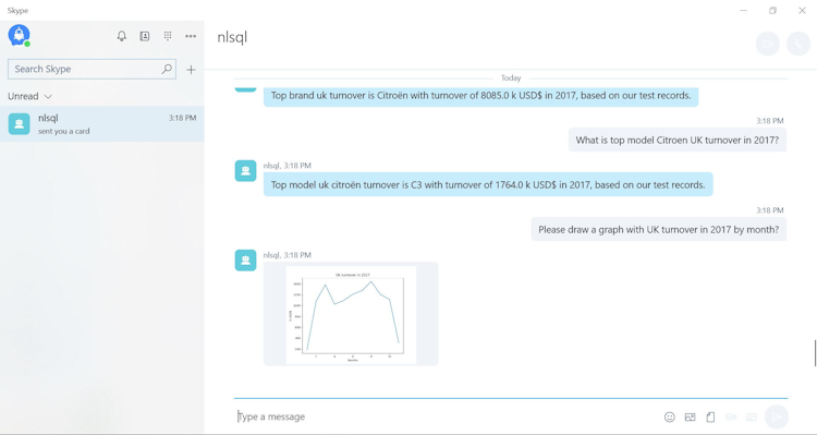 • NLSQL technology can be integrated with chat applications that you commonly use such as Skype, Slack, Telegram, Facebook Messenger, and more, as well as using webchat within your webpage.