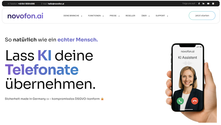 At the core of the platform is novoSync, a proprietary real-time voice technology that enables low-latency, human-like conversations. Voices, conversation flows, and responses can be tailored to specific use cases such as sales inquiries, customer support, or appointment booking. Security and compliance are key differentiators. All data is processed and stored exclusively on German servers using modern encryption standards. novofon.ai is fully compliant with GDPR requirements and aligned with the EU AI Act, making it suitable for companies operating in regulated industries or with strict data protection policies.