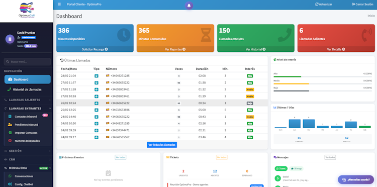 OptimusCall is an AI-powered voice agent and intelligent virtual switchboard platform designed for enterprise telecommunications in Spain. The platform combines voice agent capabilities, chatbot functionality for messaging channels, lead CRM management, and virtual switchboard operations within a unified interface. The solution addresses communication needs across medical clinics, law firms, automotive workshops, consulting agencies, educational academies, driving schools, hotels, restaurants, and real estate agencies. Each AI agent is trained with client-specific data including vocabulary, product information, and communication protocols to align conversational responses with established business processes.