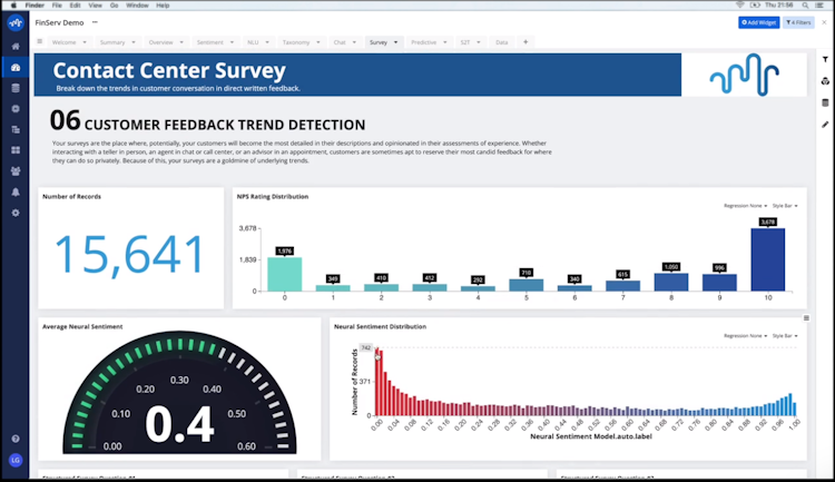 Stratifyd is an augmented intelligence and data analytics platform designed to help businesses collect, analyze, and visualize unstructured and structured customer data in real-time. Customer care representatives can develop call transcripts by applying AI modeling, natural language processing, and acoustic modeling capabilities and analyze various voice metrics such as call length, talk rate, energy level, and more.