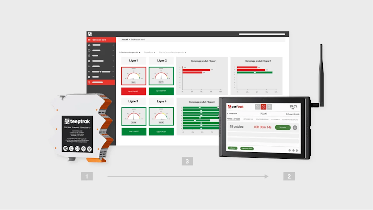 TEEPTRAK is an industrial performance measurement tool intended to calculate the profitability of a machine or process. Different modules can be adapted to different needs, such as analyzing quality criteria and monitoring machine performance, manual tasks, or external parameters.