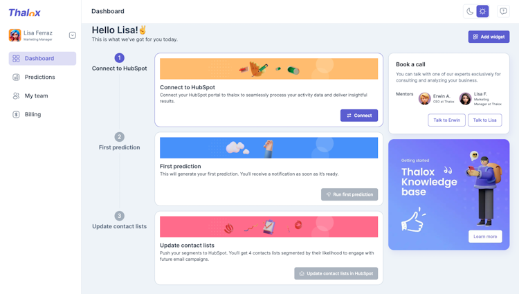 As a native HubSpot integration, it’s easy and secure to connect thalox to HubSpot. Run a Prediction to start the analytics process.