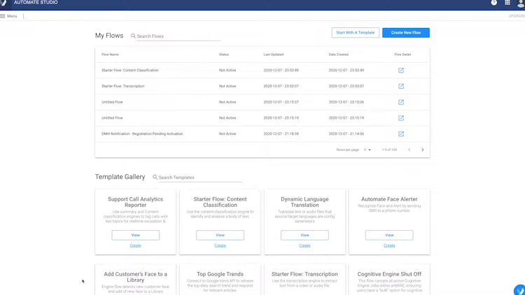 Veritone Automate Studio is a robotic process automation software designed to help organizations create and deploy artificial intelligence (AI)-enabled workflows via a unified platform. IT teams can use the application to conduct sentiment analysis and transform audio, video, and textual data into actionable intelligence.