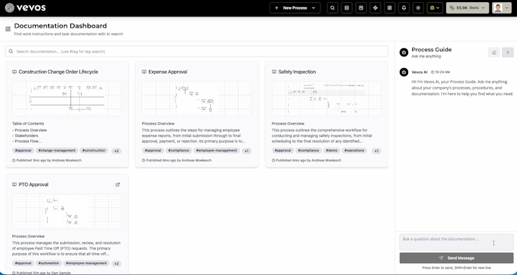 Vevos AI is an AI-first business process management and automation platform that enables organizations to create, document, and deploy Business Process Model and Notation version two point zero workflow models through natural language input. The platform addresses the needs of enterprises seeking to streamline process documentation, automate workflow execution, and maintain organizational alignment via centralized process knowledge management.